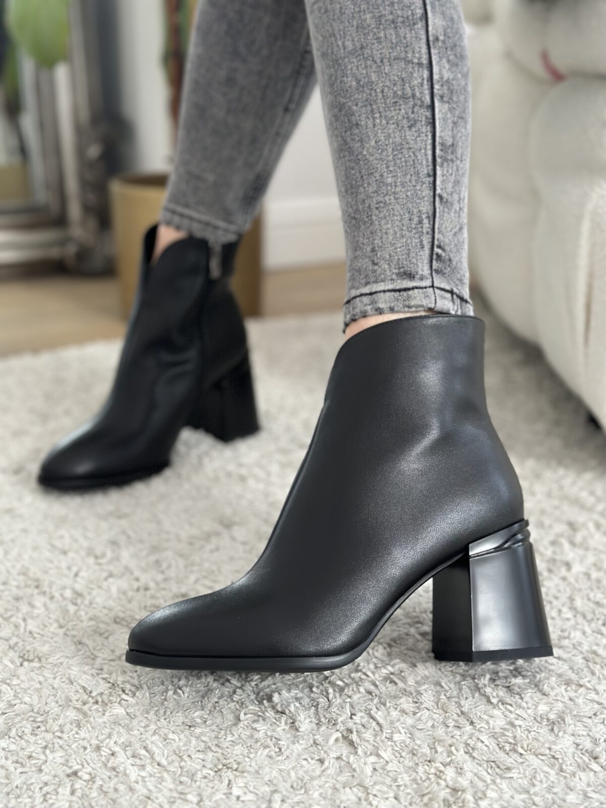 Botki na słupku Naparo Skóra Naturalna