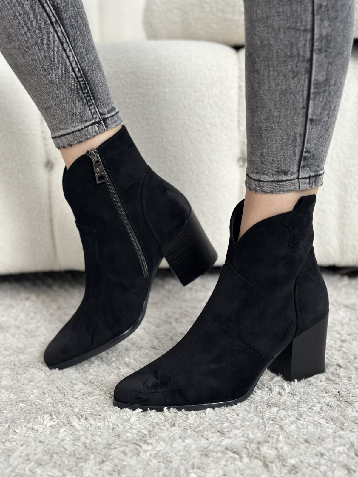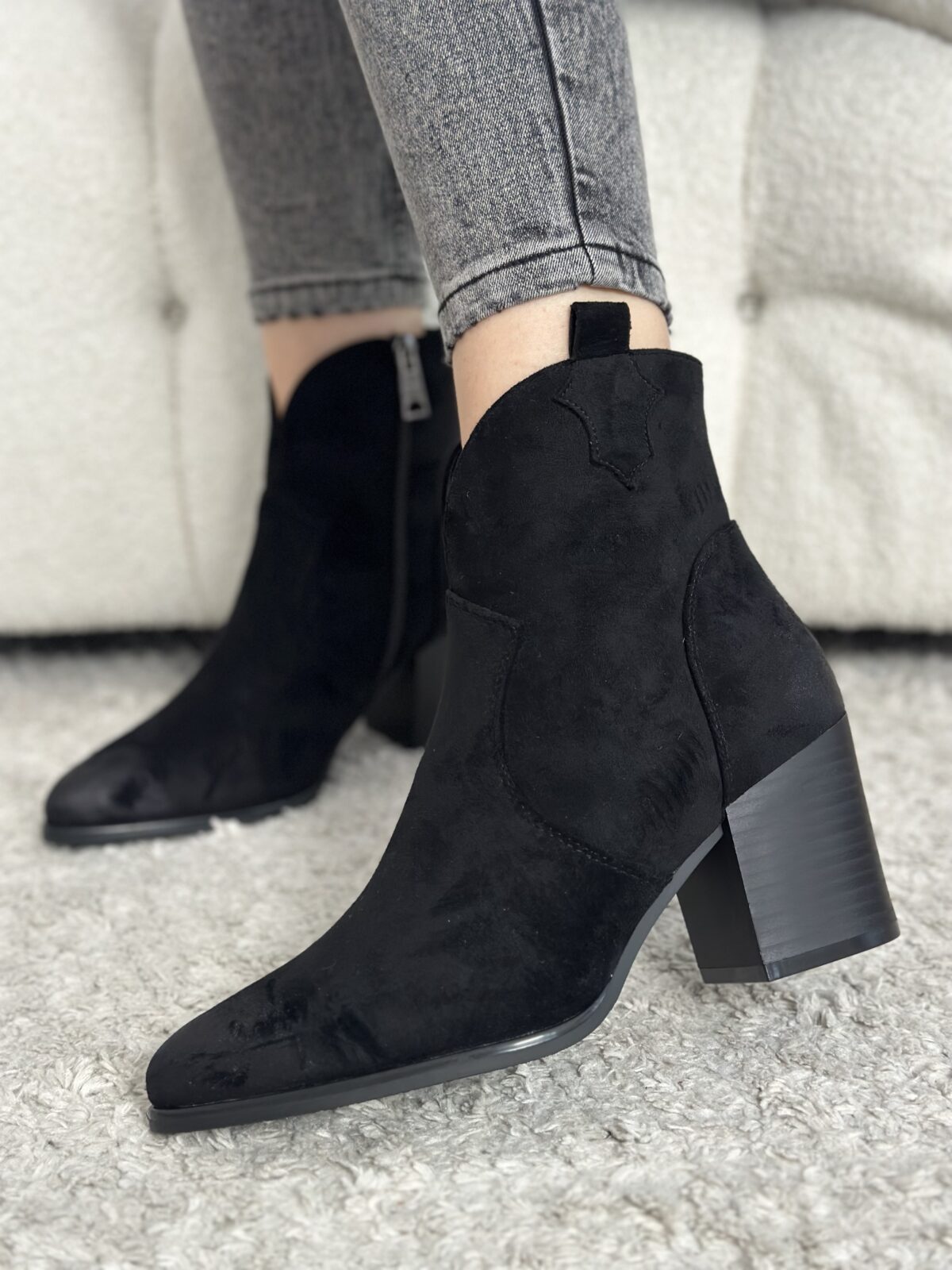 Czarne zamszowe kowbojki na obcasie Nexus