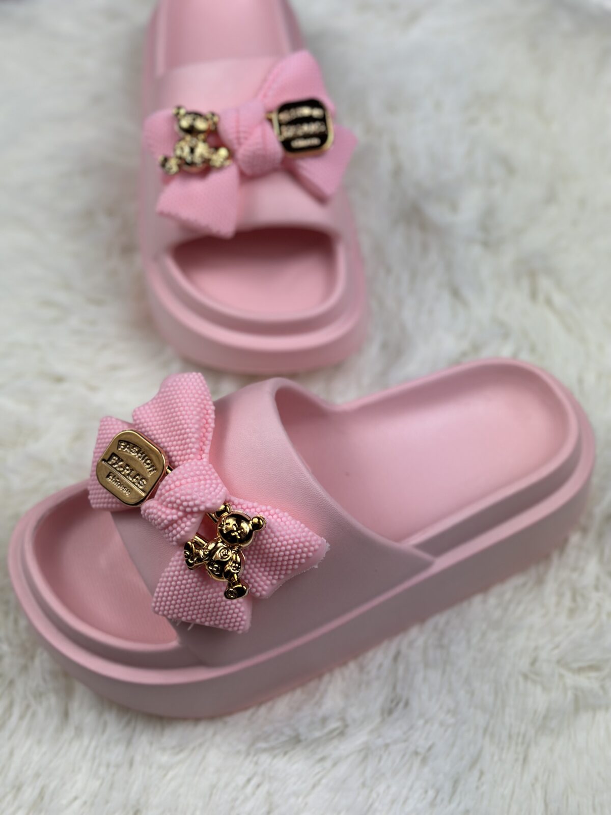 Wygodne Różowe Klapki Z Ozdobnym Misiem!